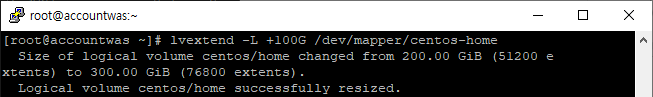 | #lvextend -L +100G /dev/mapper/centos-home |